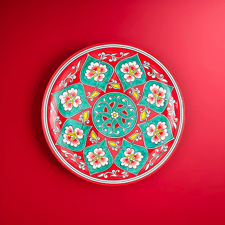 Plat en céramique Fleur Rouge /turquoise - Ø 30cm - La maison Ottomane