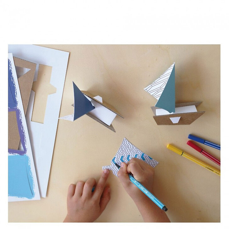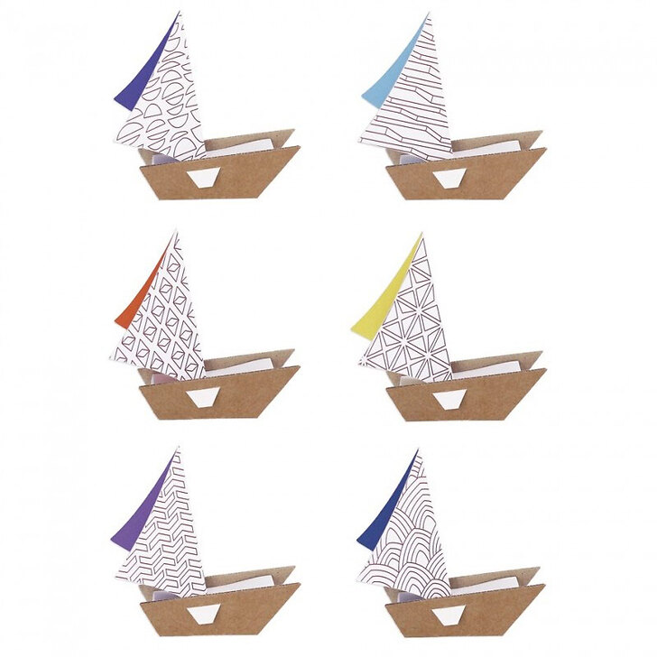 Kit de 6 voiliers en carton à colorier et à construire