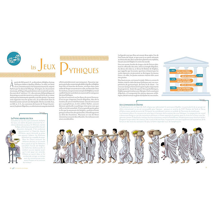 Ce beau-livre, illustré d'infographies, de cartes, de frises chronologiques, de fiches de personnalités connues, apporte un nouvel éclairage sur ces jeux sportifs antiques : l'entraînement des athlètes, leur alimentation, les festivités qui accompagnent les épreuves, mais aussi la place des femmes dans ces Jeux ou les enjeux géopolitiques, qui permettent de relier le passé au présent.