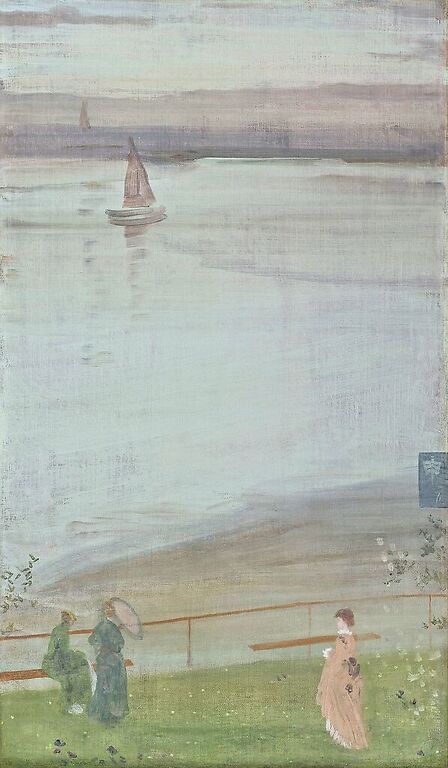 Œuvre de : Whistler, James Abbott Mac Neil Hauteur de l'original : 61,00 cm Largeur de l'original : 35,00 cm Période : 19e siècle Technique : huile sur toile Whistler, James Abbott Mac Neil - Variations en violet et vert - huile sur toile © Musée d'Orsay, Dist. RMN-Grand Palais