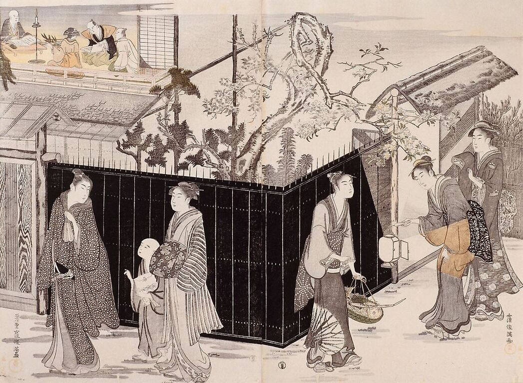 Œuvre de : Shunman, Kubo Hauteur de l'original : 36,50 cm Largeur de l'original : 25,00 cm Période : époque Edo (1603-1868) Technique : estampe nishike-e Shunman, Kubo - Une soirée dans la demeure d'un poète - estampe nishike-e © RMN-Grand Palais (musée Guimet, Paris)
