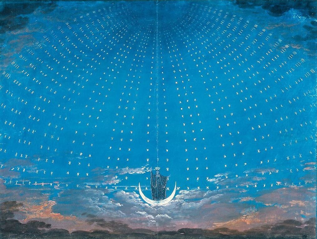 Projet de décor de scène : La Flûte enchantée (1er acte), la voûte etoilée de la reine de la nuit (affiches d'art)