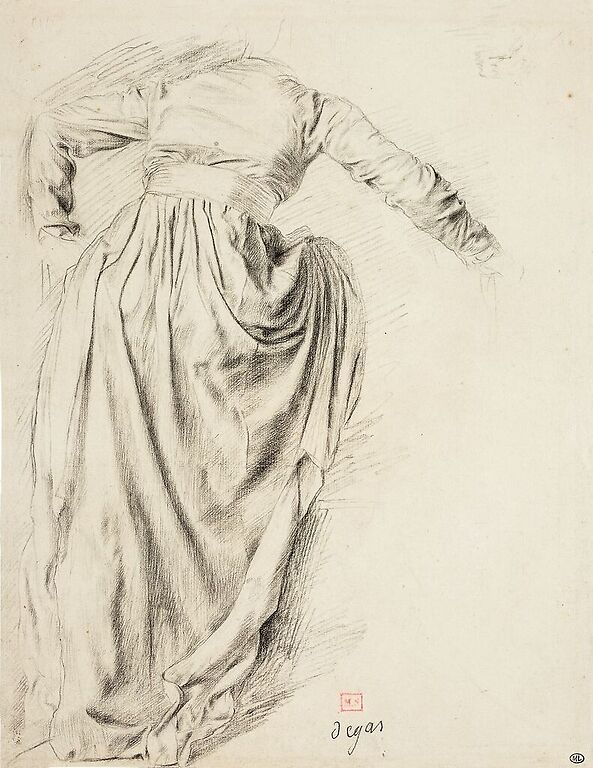 Œuvre de : Degas, Edgar Degas, Edgar, Étude de draperie d'une femme de dos, montant dans un char, étude pour Sémiramis construisant Babylone Paris, Musée d'Orsay © Photo Rmn - GP (musée d'Orsay) - M. Urtado