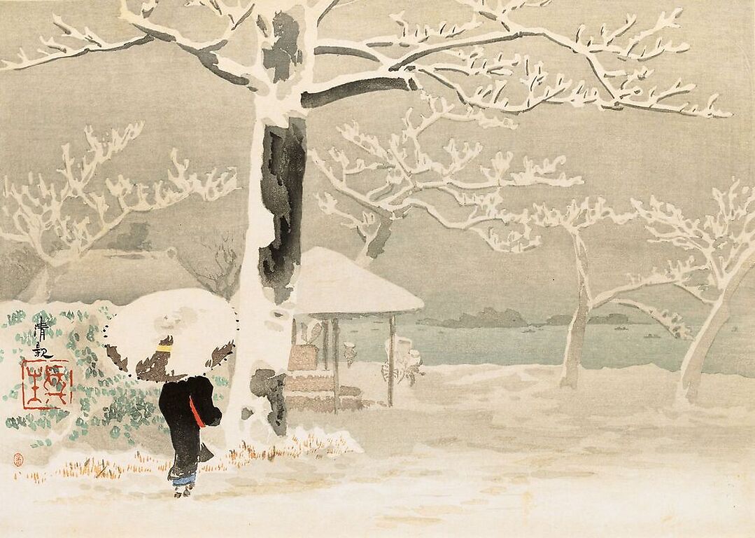 Femme de dos dans un paysage de neige, 1847-1915 (affiches d'art)