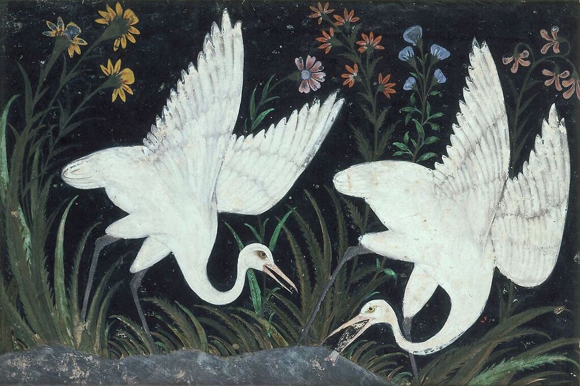Deux grues au bord d'un étang (affiches d'art)