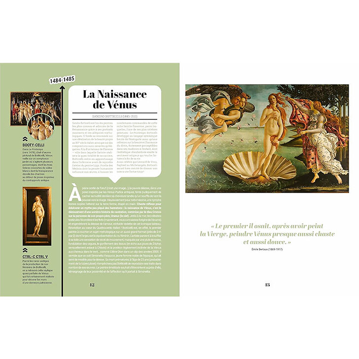 Au programme de son tout premier ouvrage, publié chez Hugo Publishing, une recension culottée de l'art érotique façon « Dard-d'art », de la préhistoire au mitan du XXe siècle. Pour découvrir la piquante genèse des Hasards heureux de l'L'Escarpolette, changer de regard sur la Vénus de Willendorf, Gabrielle d'Estrées et l'une de ses sœurs ou Raboteurs de parquet, décoder les symboles cachés chez Titien, Rubens ou David, ou s'amuser des audaces d'artistes prisés de puissants commanditaires... Mais ce joyeux et rafraîchissant cocktail ne saurait être parfait sans deux ingrédients indispensables : un soupçon d'analyse bien au fait des questionnements actuels (identité, féminisme...), faisant voler au passage quelques clichés relou, et une bonne dose de bienveillance envers les protagonistes de ces belles histoires de l'art qui donnèrent lieu aux plus grands chefs-d'œuvre.