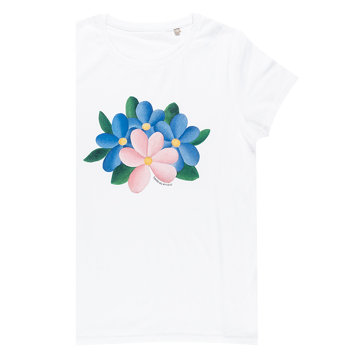 Le t-shirt est imprimé d'un détail de l'œuvre de Tarsila do Amaral (1886-1973), Manacá, 1927