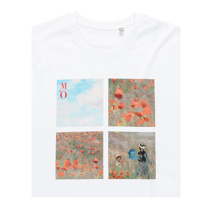 Ce T-shirt est imprimé de 4 détails de l'œuvre de Claude Monet (1840-1926), Coquelicots, 1873.