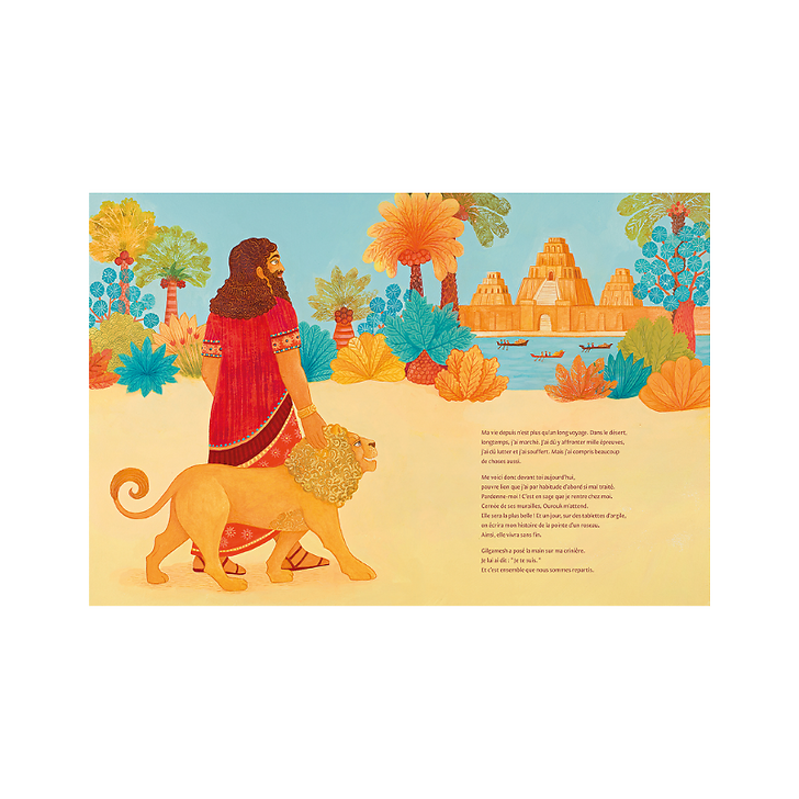 Géraldine Elschner parvient à donner vie à Gilgamesh, à nous faire partager ses extraordinaires aventures dans un récit resserré mais habité. Les superbes illustrations d'Anja Klauss nous plongent dans cette mythologie aux couleurs éclatantes.