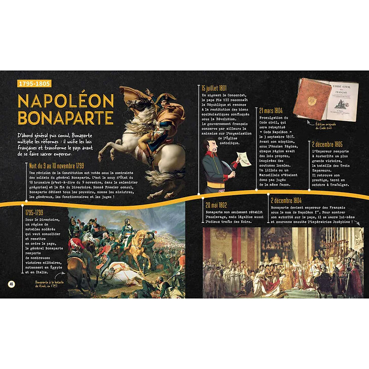 Voici une magnifique chronologie pour les 8-11 ans sur l'histoire de France. Grâce à ce bel ouvrage, très illustré, les grands événements de l'histoire de France n'auront plus aucun secret pour vos enfants ! Ils découvriront aussi les grands personnages qui ont fait l'Histoire de France, et les dates clés qui ont marqué notre histoire. Avec "Secrets d'Histoire junior", l'histoire devient vivante, passionnante et divertissante !