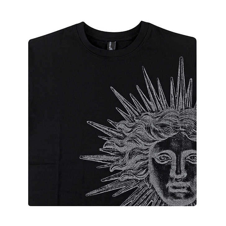 Le soleil, c'est Apollon, dieu de la paix et des arts ; c'est aussi l'astre qui donne vie à toutes choses, qui est la régularité même, qui se lève et qui se couche. A l'instar du dieu, Louis XIV, héros guerrier, ramène la paix ; il protège les arts, il est le dispensateur de toutes les grâces. Par la régularité de son travail, par ses levers et couchers publics, il marque la ressemblance, imprimée dans la pierre. Partout le décor de Versailles mêle les représentations et les attributs du dieu (lauriers, lyre, trépied) aux portraits et aux emblèmes royaux.