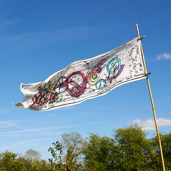 Écharpe inspirée de l'œuvre de Jean Tinguely « Requiem pour une Feuille Morte », 1967.