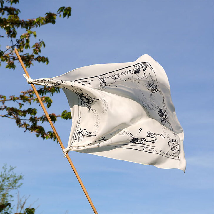 Ce foulard a été le premier créé par l'artiste Jean Tinguely et inspiré par sa fontaine à Bâle (Suisse).