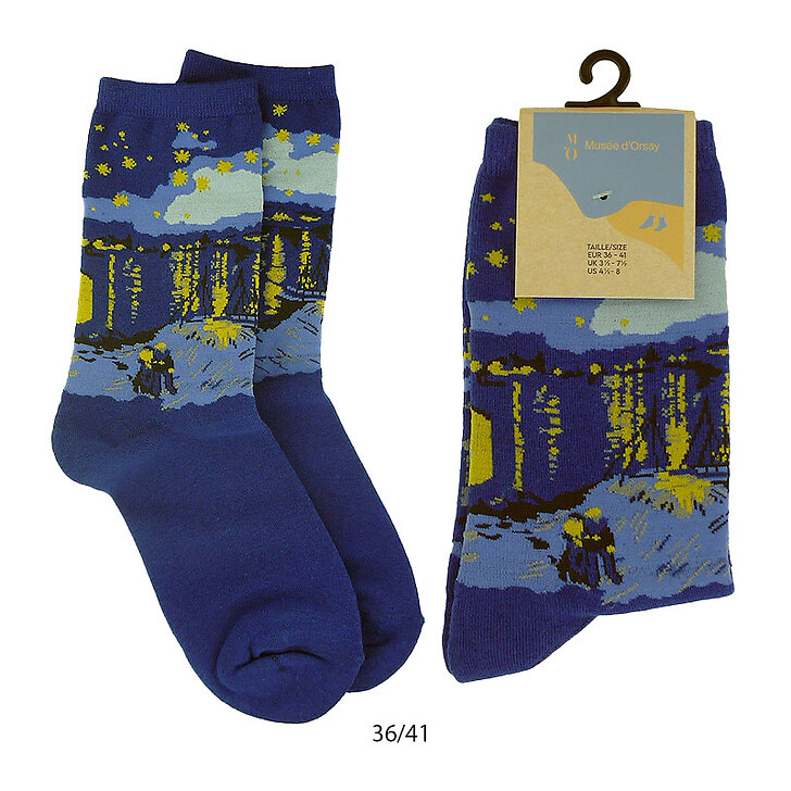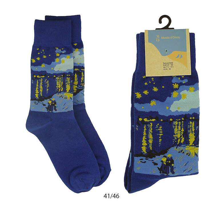 Ces chaussettes sont inspirées de l'œuvre de Vincent van Gogh (1853-1890), La nuit étoilée, 1888, conservée au musée d'Orsay.