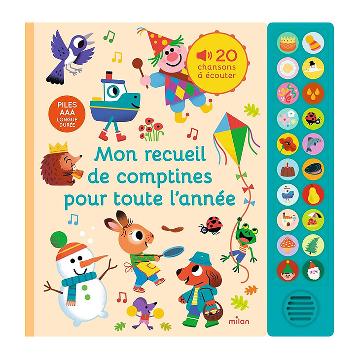 Voici le recueil de comptines incontournables pour chanter toute l'année, quelle que soit la saison ! Avec ce grand livre sonore au boîtier solide et rigolo, les tout-petits ont leur jukebox à portée de main.