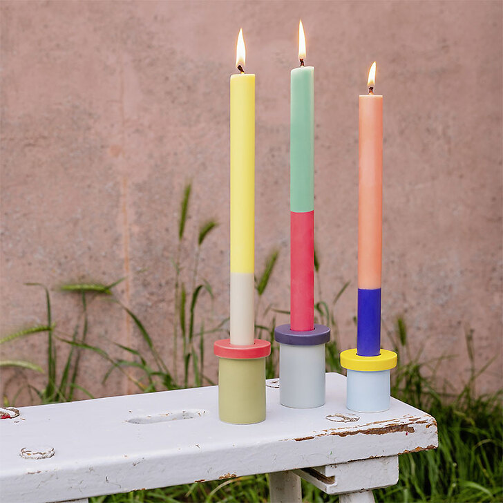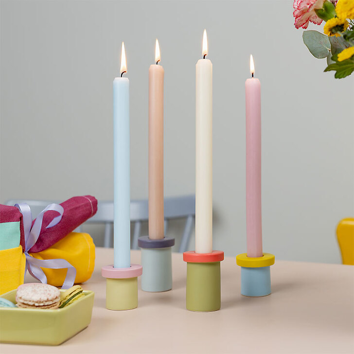 On ne peut que les aimer : Les bougeoirs en porcelaine émaillée mate allient un design décontracté à des combinaisons de couleurs qui attirent immédiatement le regard. Le bord supérieur des bougeoirs, de couleur contrastée, assure l'équilibre de la forme et recueille les gouttes de cire. Le set se compose de quatre bougeoirs de deux hauteurs différentes qui, disposés individuellement ou en groupe, constituent un élément de décoration dans la maison qui sort certainement de l'ordinaire.