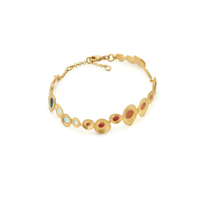 Bracelet en métal mat avec bain d'or de 24 K formé d'une forme irrégulière avec émail à froid multicolore.
