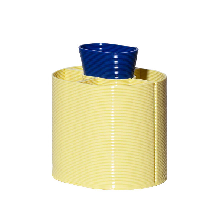 Cet objet est fabriqué en impression 3D dans notre studio à partir de bouteilles plastiques recyclées et recyclables ainsi qu'en bioplastique compostable industriellement fait à partir d'amidon de maïs (rPETG + PLA).