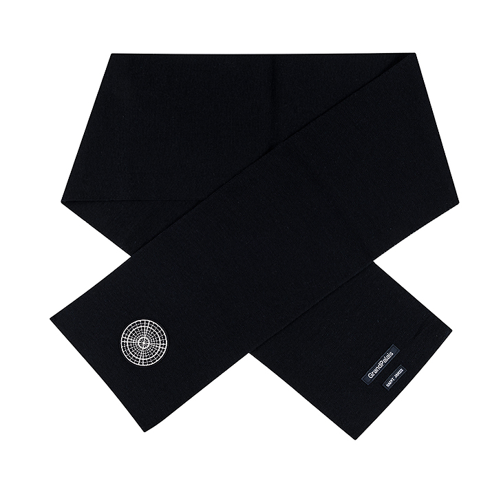 Écharpe en 100% laine douce, tricotée dans les ateliers SAINT JAMES selon un savoir faire transmis depuis plus de 135 ans. Sa maille dense et régulière offre chaleur, confort et tenue. Sur l'extrémité, un patch rond brodé en fil gris argent (6,4 cm), appliqué sur feutrine navy, reprend le motif exclusif inspiré de la verrière du Grand Palais, transformée en rose des vents pour cette collaboration. Une pièce chaude et intemporelle, pensée pour accompagner les silhouettes de la collection et célébrer le savoir faire français.