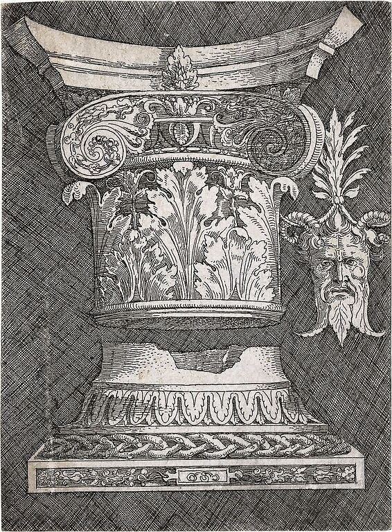 Œuvre de : Albrecht Altdorfer Base et chapiteau de colonne avec un ornement en forme de masque, Albrecht Altdorfer, vers 1525 © Photo The British Museum, Londres, dist. Rmn-GP - The Trustees of the British Museum I © Rmn - Grand Palais, Paris 2020