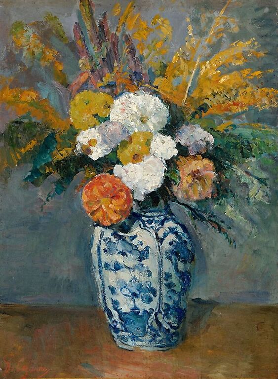 Dahlias dans un grand vase de Delft (affiches d'art)