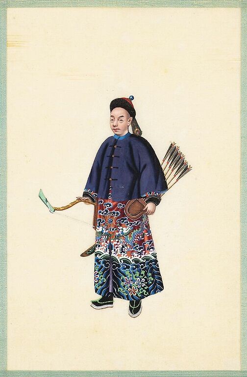 Page d'un album de peinture d’exportation figurant des personnages chinois (affiches d'art)