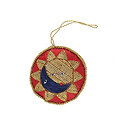 Fabriquée en Inde, cette décoration en tissu brodé de fils dorés offre un dessin symbolique et un jeu de lumière élégant. Son rembourrage en polyester lui apporte du volume, idéal pour donner du relief à un sapin, une poignée de porte ou sur un mur au dessus du lit pour faire de doux rêves.