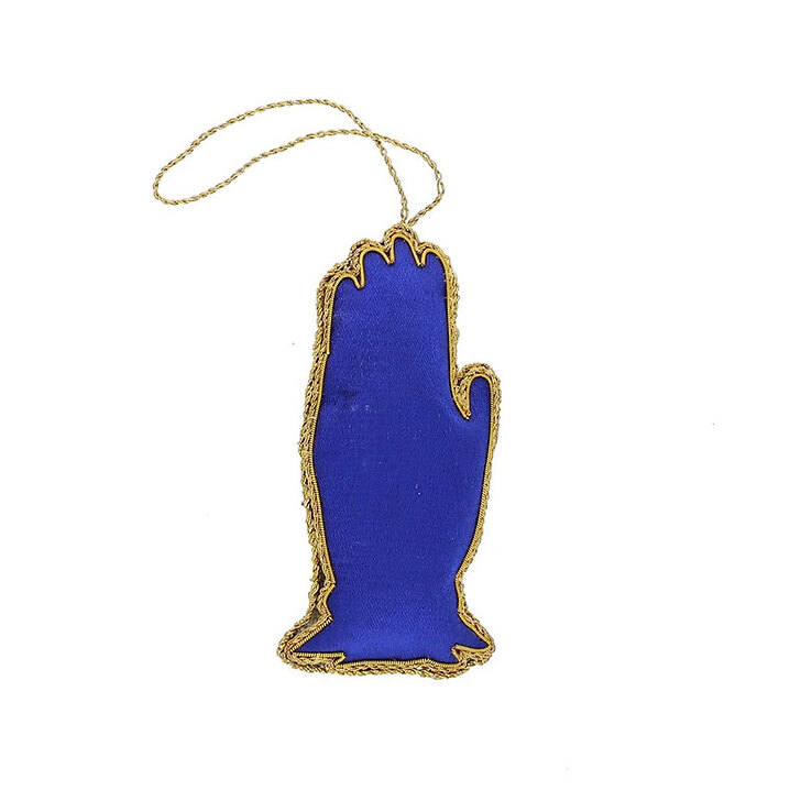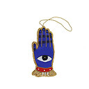 La suspension brodée main bleue et œil protecteur est une pièce au fort pouvoir symbolique.
