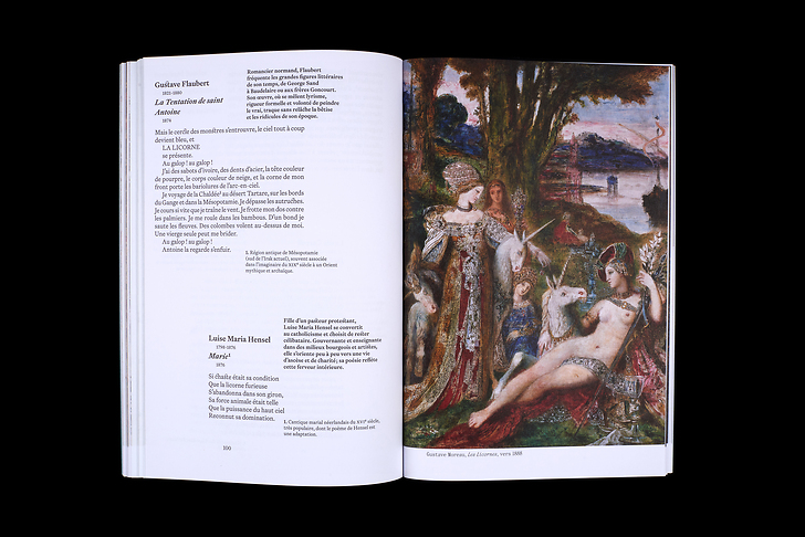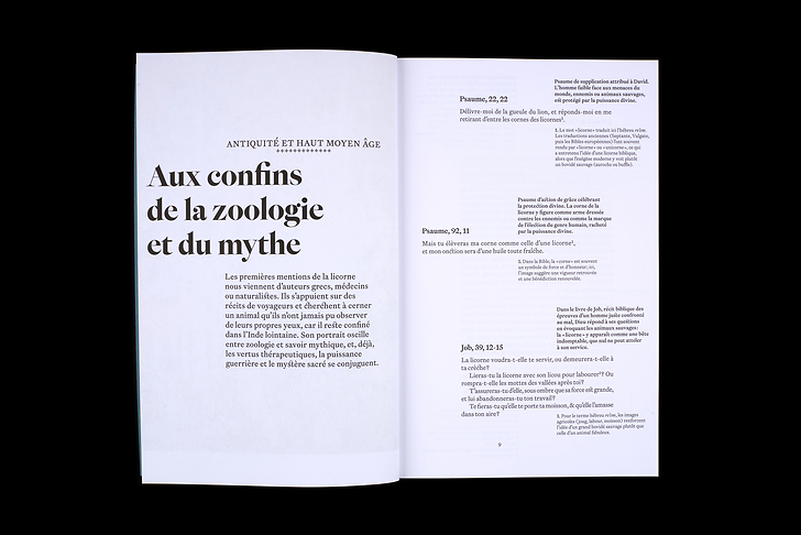 Des auteurs antiques - Aristote, Pline l'Ancien - décrivent l'animal avec la rigueur du naturaliste ou l'enthousiasme du voyageur. Les Pères de l'Église s'en emparent pour la transformer en allégorie du Christ mêlant puissance et pureté. Chez les poètes et les savants du Moyen Âge, la bête oscille entre désir spirituel et érotisme.