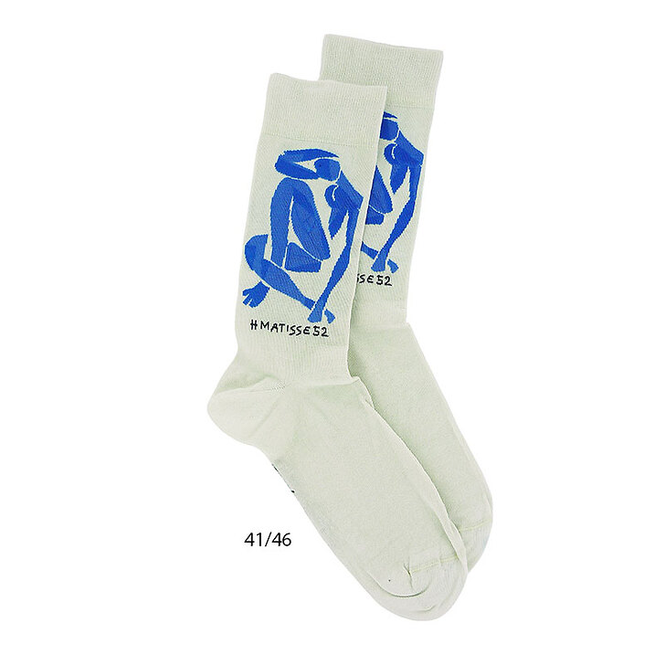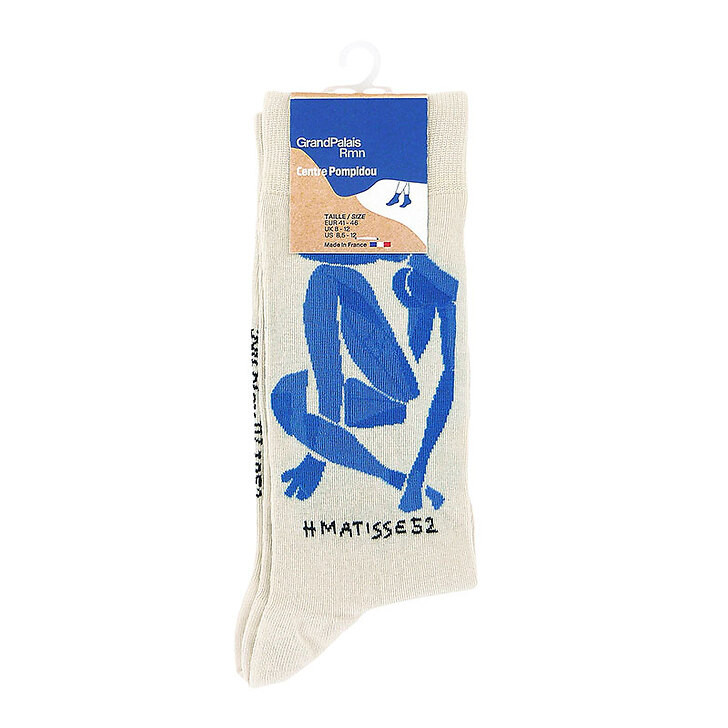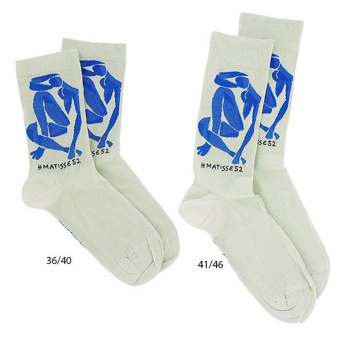 Le visuel de ces chaussettes reprend un détail de l'œuvre de Henri Matisse, Nu bleu IV (1952).