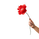 Cette fleur est faite de papier crêpe teint et montée sur une longue tige verte pliable. Vous pouvez facilement façonner la tige, de sorte que vous pouvez obtenir la forme et la longueur que vous voulez.
