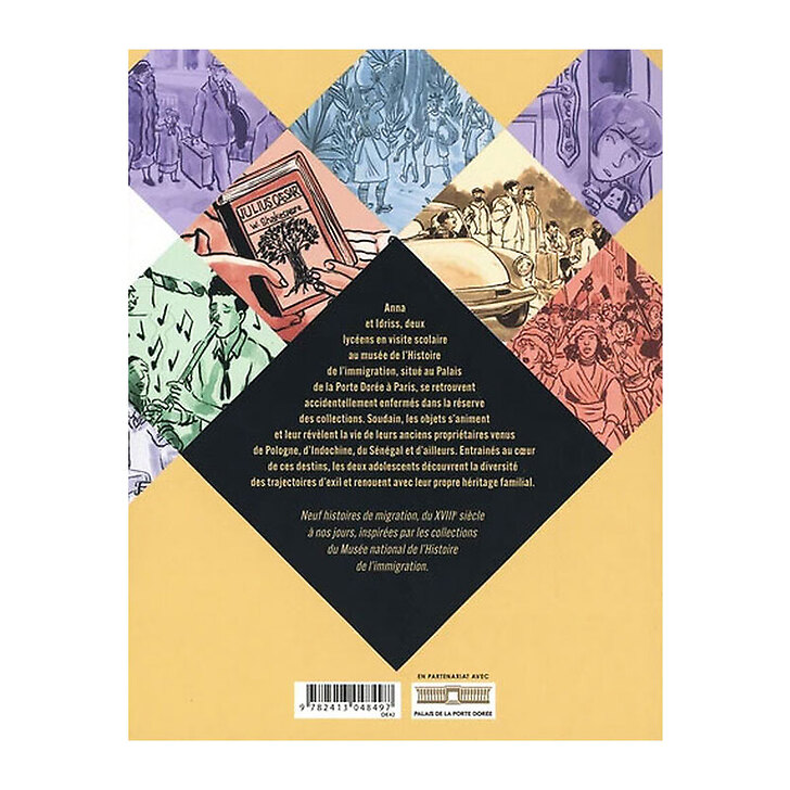 Deux adolescents égarés dans un musée explorent, à travers neuf récits d'exil, l'histoire migratoire française. Un album réalisé en partenariat avec le Palais de la Porte Dorée - musée national de l'Histoire de l'immigration.