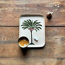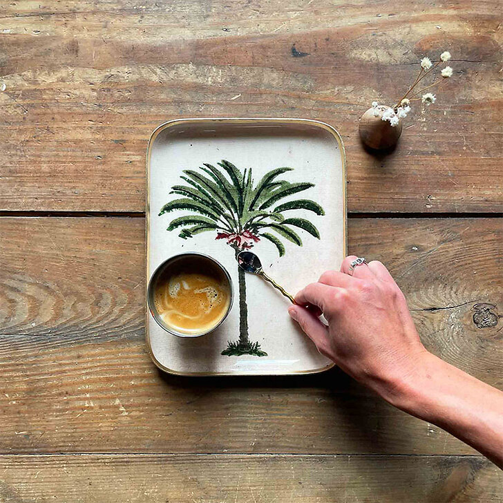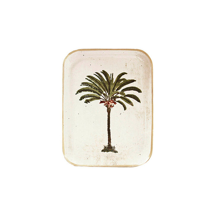 Plateau rectangulaire en aluminium émaillé - imprimé "Palmier"